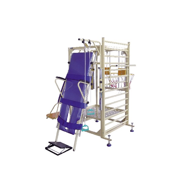 167×125×200 cm组件:肩梯、踝关节训练器、滑轮吊环训练器、胸背部矫正运动器、复式墙拉力器、运动训练架、肋木,产品用途:1、复式墙拉力器:适用于四肢进行抗阻力运动,也可进行肌力训练和关节活动度训练。2、胸背部矫正运动器:适用于防止和矫正脊柱弯曲、驼背。3、肩梯:通过手指沿着肩梯不断上移,逐渐提高肩关节的活动范围,减轻疼痛。4、踝关节训练器:适用于利用自身质量进行矫正和防止足下垂、足内翻、足外翻等畸形。5、肋木:适用于借助肋木杠进行四肢关节活动范围和肌力训练、坐站立训练、平衡训练及躯干的伸展训练。6、运动训练架:适用于以投篮的方式提高上肢的活动度范围、四肢平衡能力及手眼的协调能力。7、滑轮吊环训练器:适用于肩关节活动范围训练、关节牵引、肌力训练。特点和功能:可进行前臂、腕关节、肩关节、四肢的组合训练,并矫正脊柱、踝关节的畸形。使用复式墙拉力器训练时运动阻力可调。进行前臂、腕关节、肩关节训练时,手握持装置的高度可调,以适应不同身高和臂长的人群。