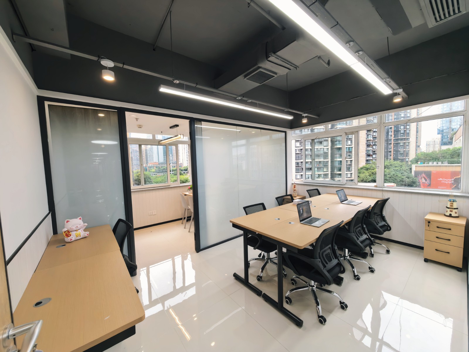 2、1至15人间多种户型,精装办公室配备全部办公设备家私,所有房间户型均能注册公司: