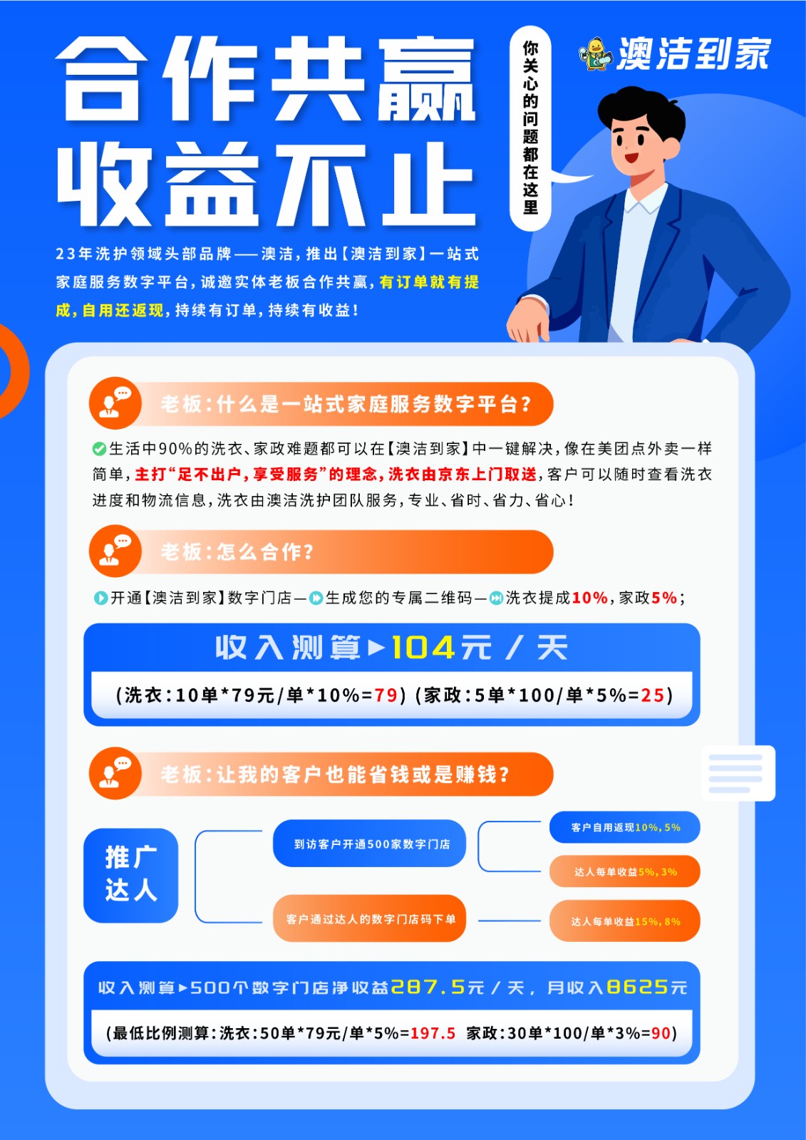 一手抱娃,一手事业,数字家政平台为宝妈创业开启了一扇新大门。清晨六点半,送完孩子上学后,李薇并没有像其他家长一样直接回家。她打开手机,查看今天的单预约——一次衣柜收纳整理服务。作为澳洁到家平台的签约服务顾问,这份工作时间灵活的工作让她既能照顾孩子,又能拥有自己的收入。“时间和地点都很自由,可以根据孩子的上学时间来接单。”李薇边整理工具边介绍,这种工作模式特别适合需要照顾家庭的宝妈。随着数字化时代的到来,像澳洁到家这样的家庭服务数字平台正成为宝妈创业的新选择。它们通过微信小程序整合用户需求和服务资源,为创业者提供了低门槛、轻资产的创业机会。