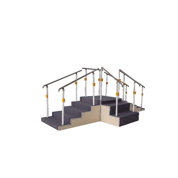 训练用扶梯(三面)是更灵活的康复训练设备,核心优势是多方向训练维度,能同时满足上下楼、侧向移动等复合训练需求,提升患者的下肢控制与空间协调能力。